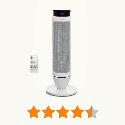 높이 50cm, 몸통 11.5cm로 디자인이 깔끔하며 회전 폭은 약 60도 정도로 보시면 됩니다. 바람은 위로만 올라가서 발로 향하는 바람은 약간 미흡하다고 할 수 있습니다. 타이머는 최대 8시간이며 온도조절 기능은 리모컨으로만 가능합니다.